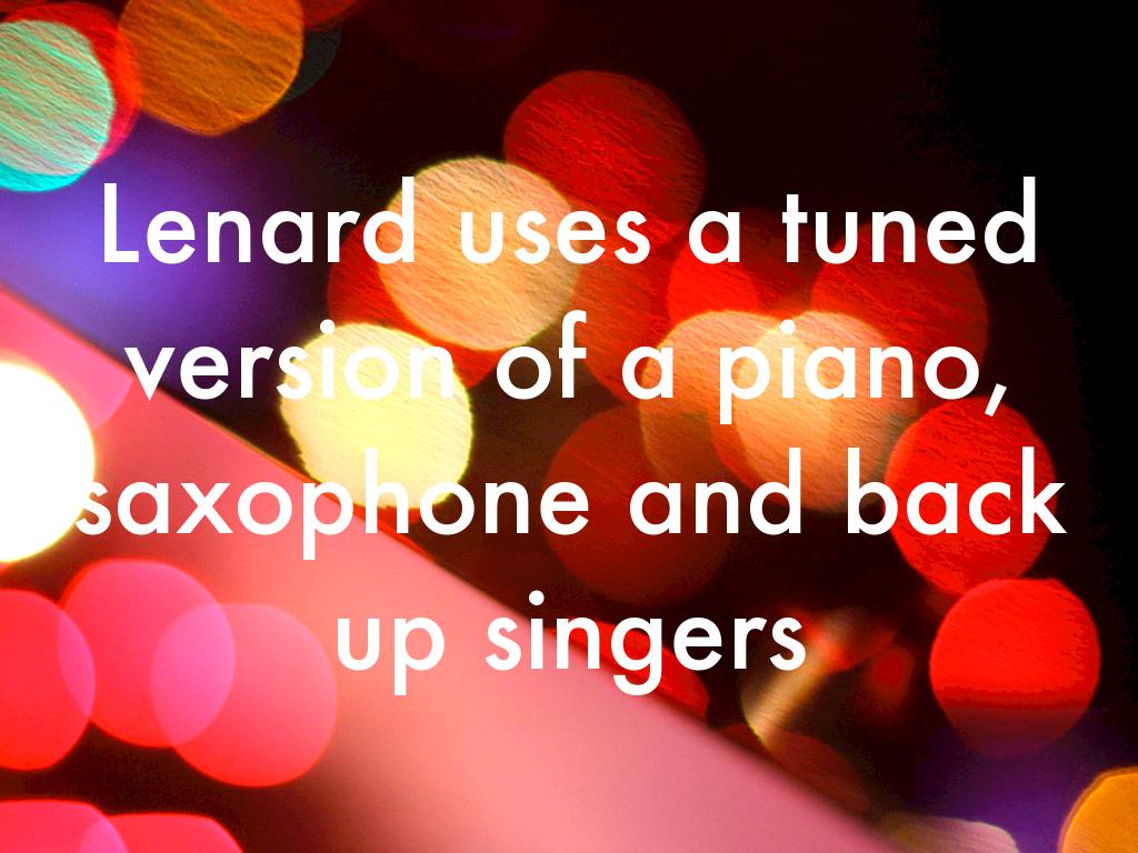 Lenard uses a tuned version of a piano, saxophone and back up singers