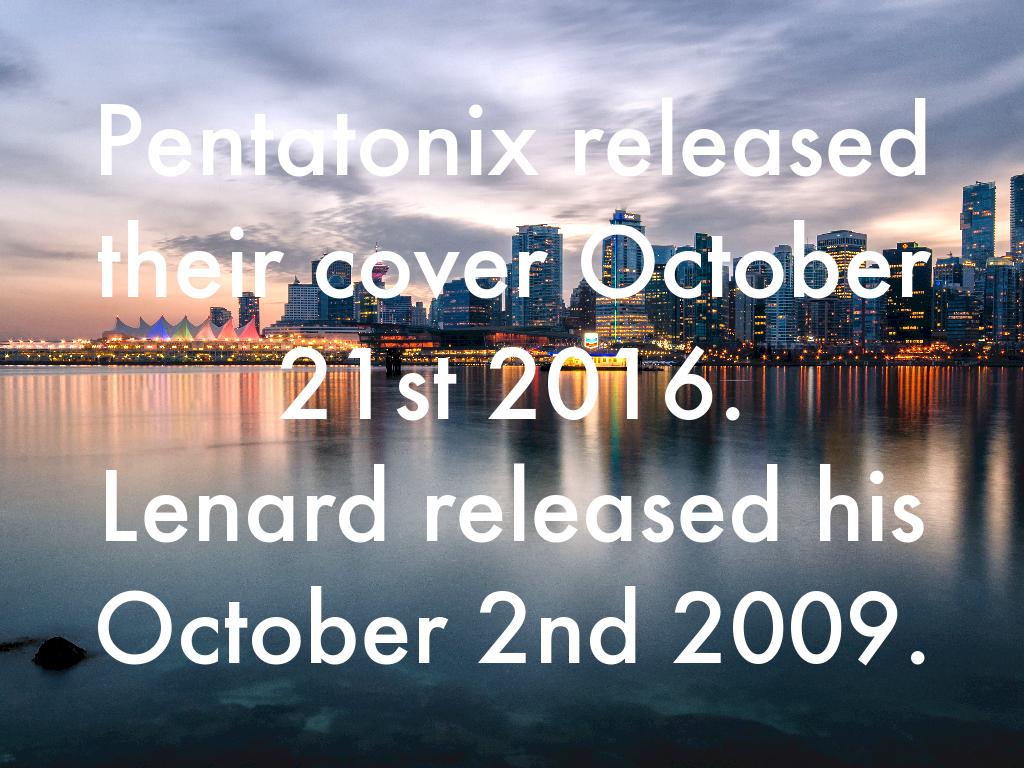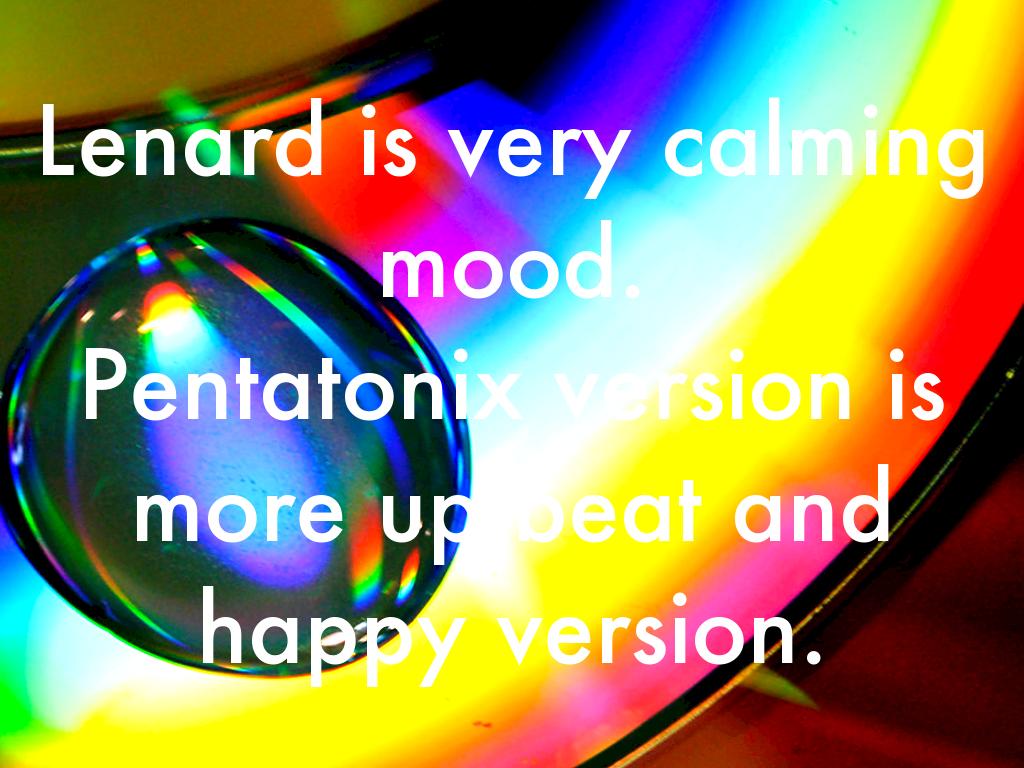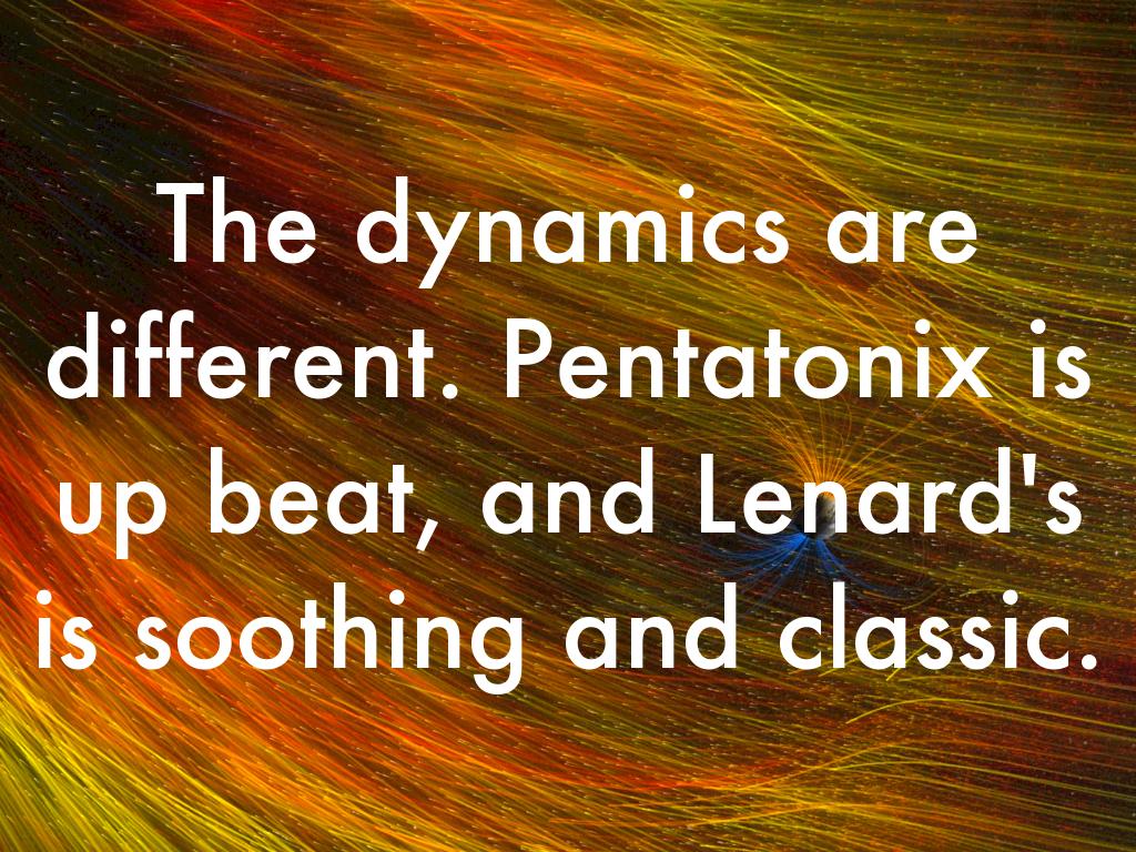 The dynamics are different. Pentatonix is up beat, and Lenard's is soothing and classic.