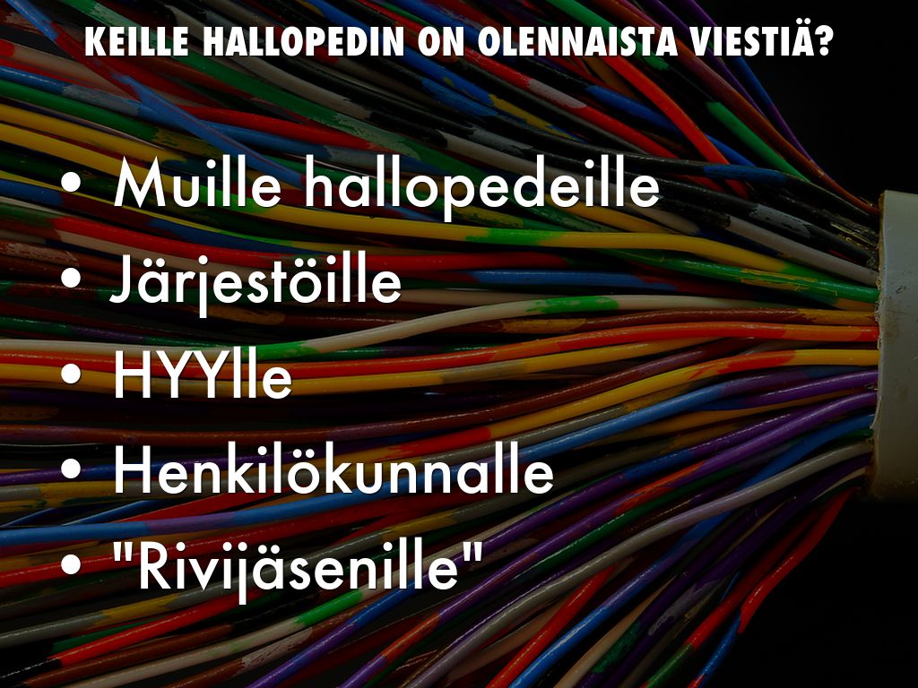 KEILLE HALLOPEDIN ON OLENNAISTA VIESTIÄ?