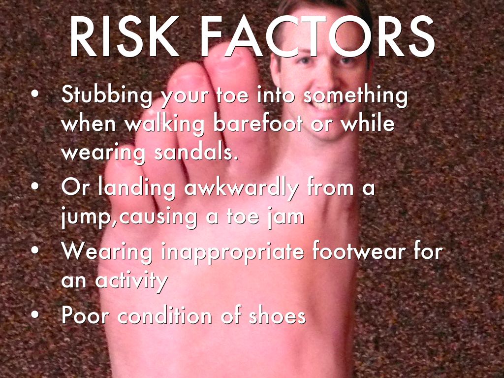 Stubbing your toe into something when walking barefoot or while wearing sandals.