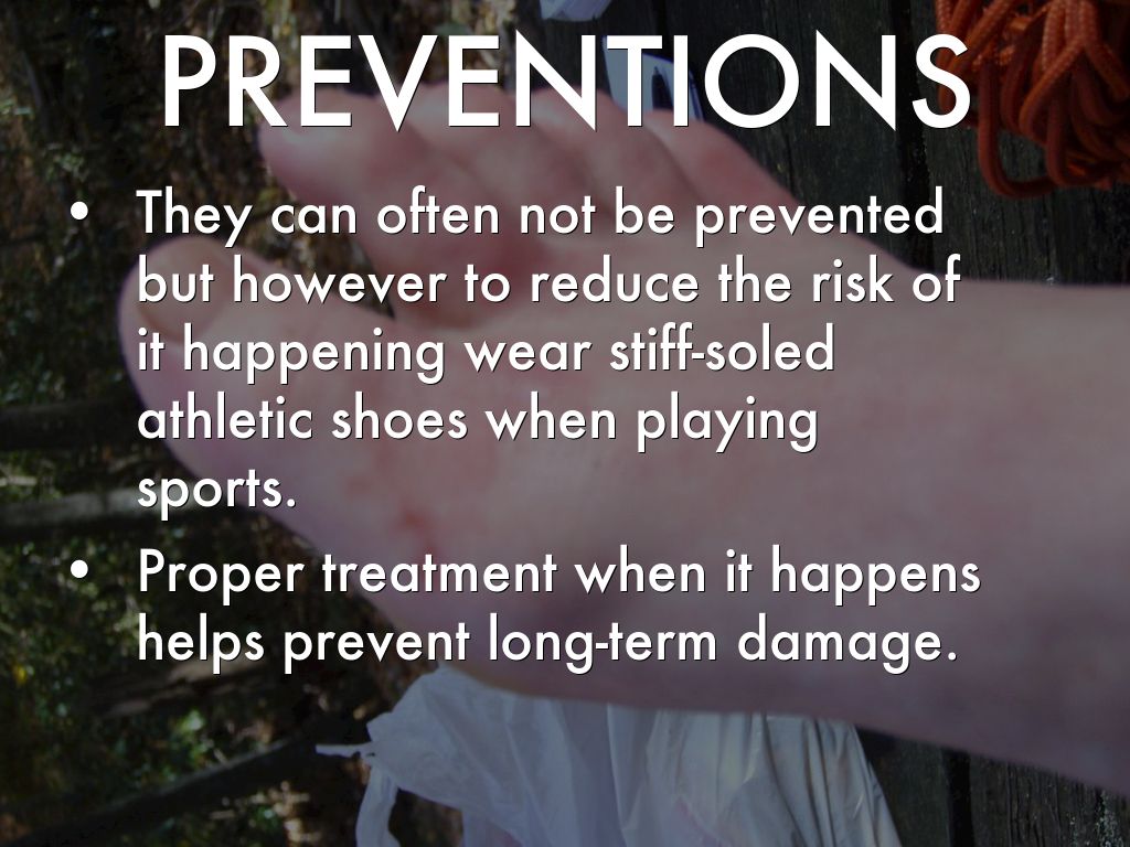 They can often not be prevented but however to reduce the risk of it happening wear stiff-soled athletic shoes when playing sports.
