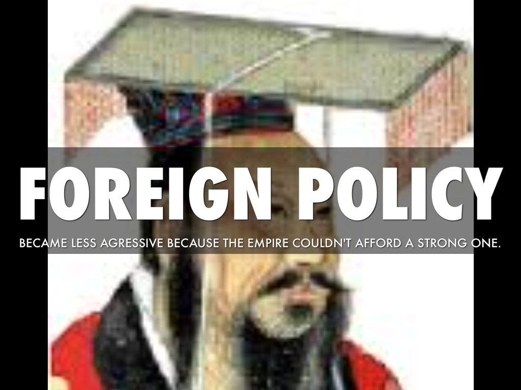 BECAME LESS AGRESSIVE BECAUSE THE EMPIRE COULDN'T AFFORD A STRONG ONE.