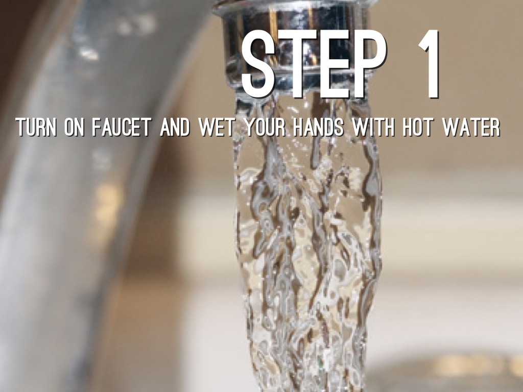 TURN ON FAUCET AND WET YOUR HANDS WITH HOT WATER
