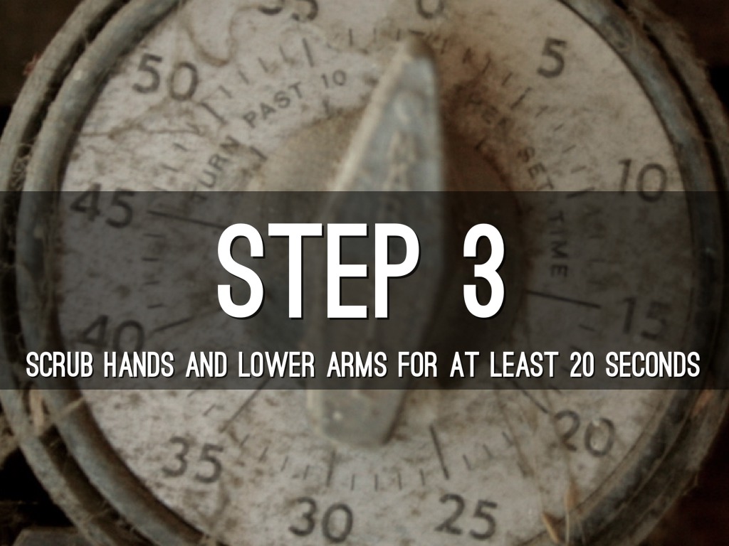 SCRUB HANDS AND LOWER ARMS FOR AT LEAST 20 SECONDS