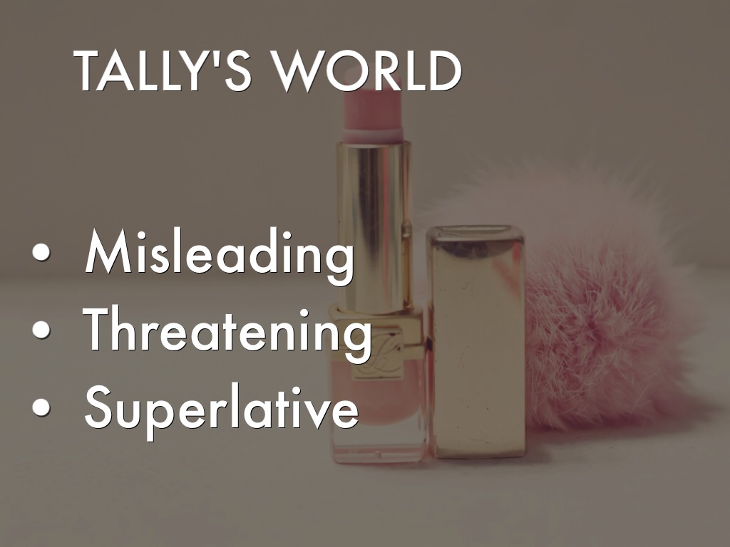 In order to be accepted in Tally's city, you must undergo a supernatural and permanent change. Yet, when she journeys to The Smoke, she is accepted for her natural looks and ways. This conflict reveals that if you are not accepted where you are, maybe that's not where you're supposed to be.