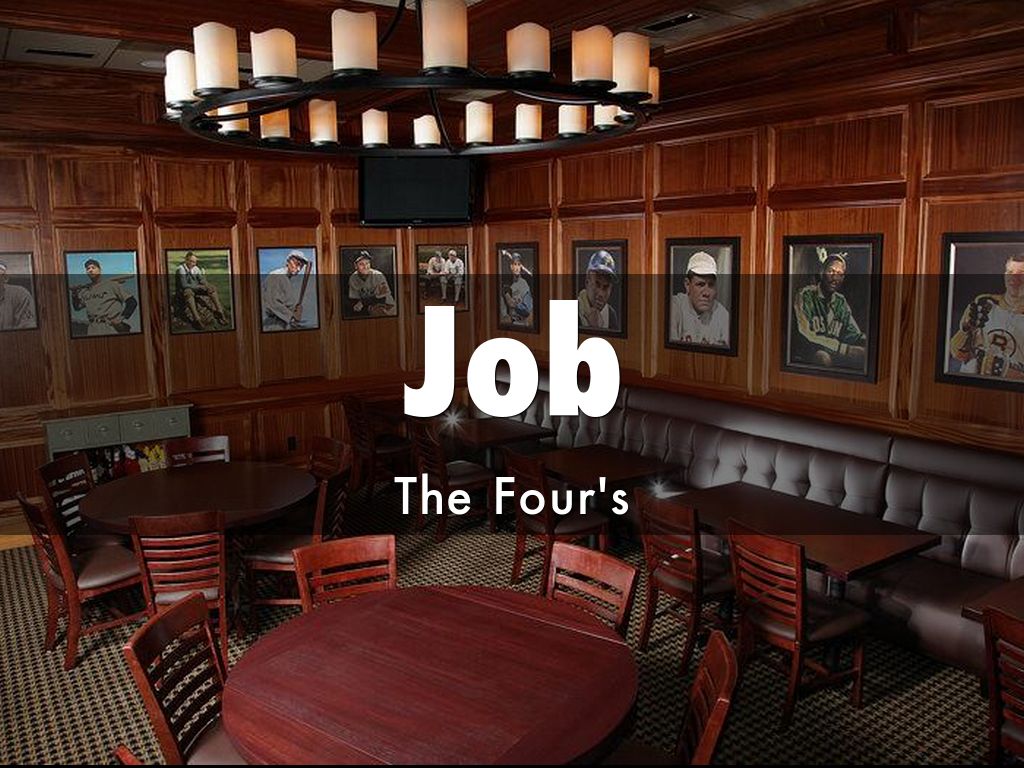 During the summer I work as a hostess at my uncle's restaurant, The Four's. The Four's is a sports bar / restaurant. It is my favorite place to get food.