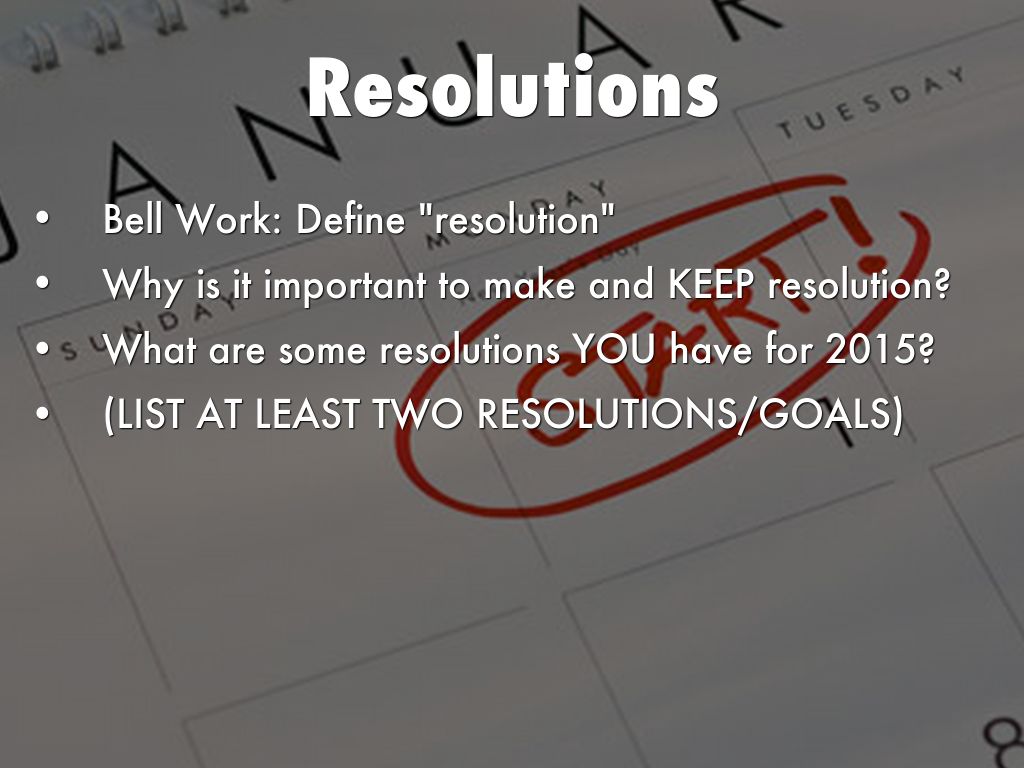 • (LIST AT LEAST TWO RESOLUTIONS/GOALS)