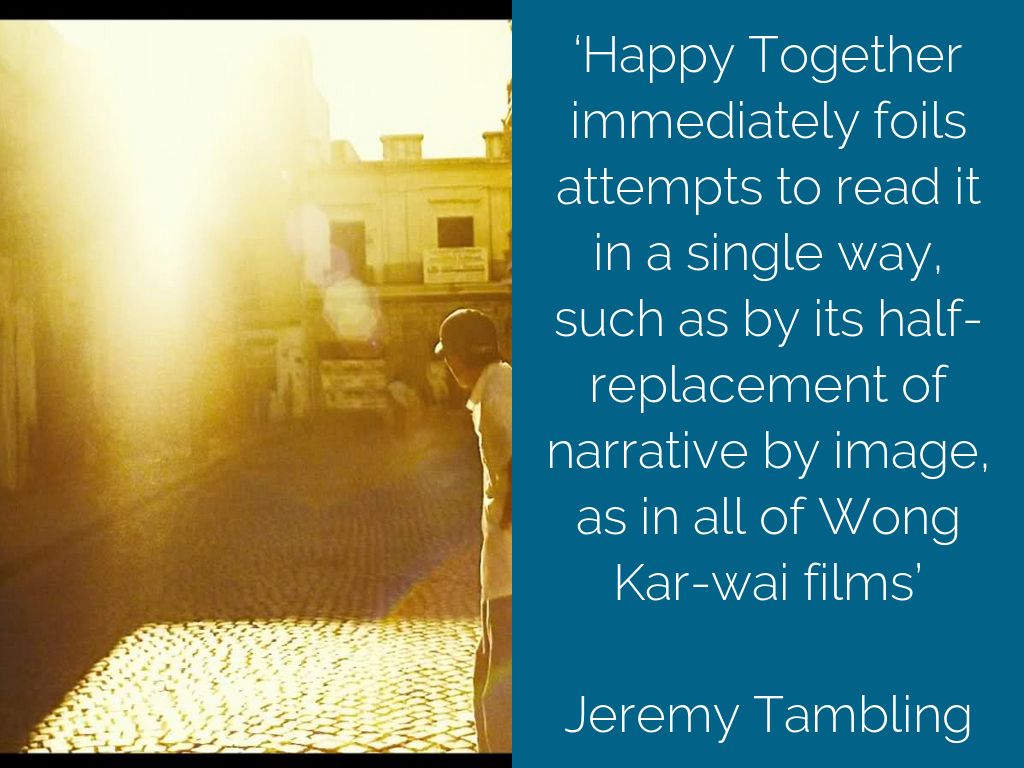 ‘Happy Together immediately foils attempts to read it in a single way, such as by its half-replacement of narrative by image, as in all of Wong Kar-wai films’