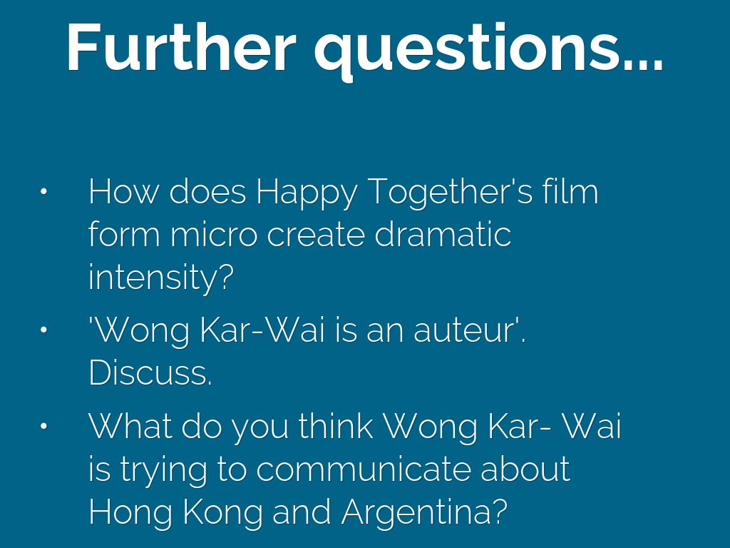 - Do you think Happy Together is style over substance?