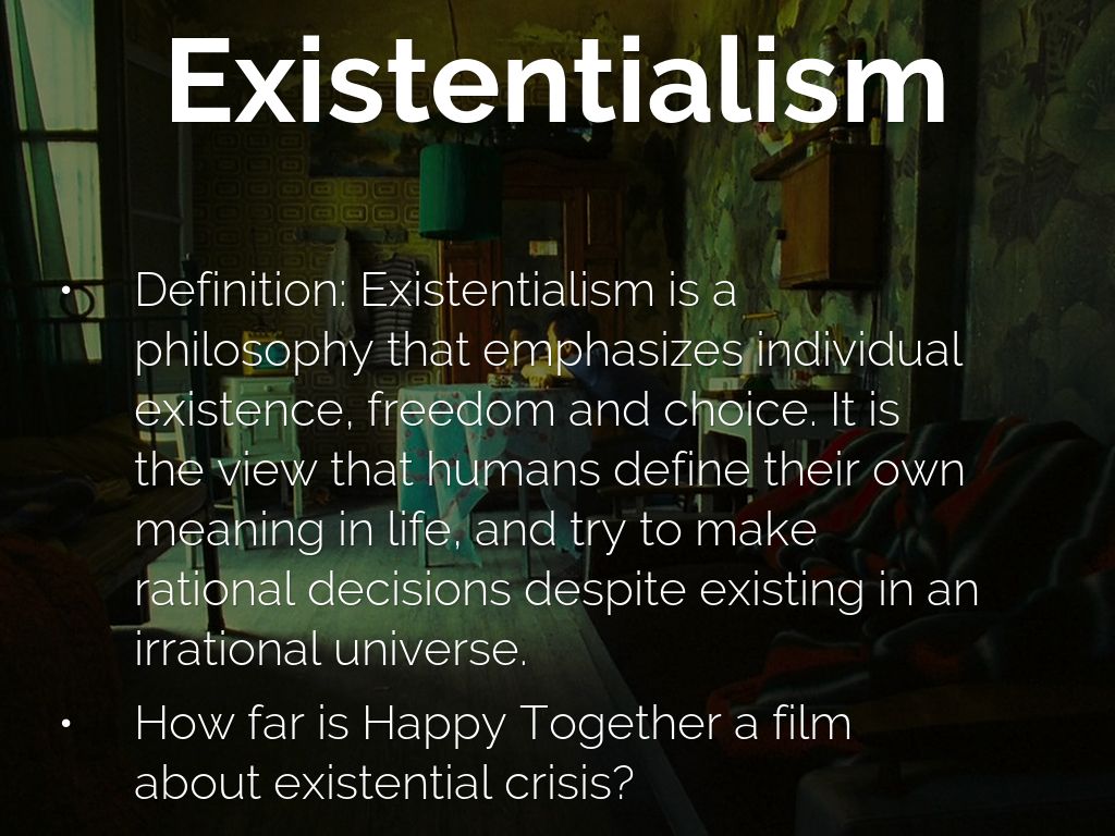 - Definition: Existentialism is a philosophy that emphasizes individual existence, freedom and choice. It is the view that humans define their own meaning in life, and try to make rational decisions despite existing in an irrational universe.
