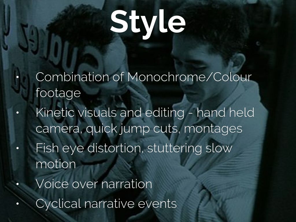 - Kinetic visuals and editing - hand held camera, quick jump cuts, montages