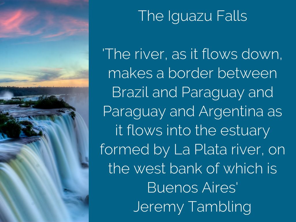 'The river, as it flows down, makes a border between Brazil and Paraguay and Paraguay and Argentina as it flows into the estuary formed by La Plata river, on the west bank of which is Buenos Aires'