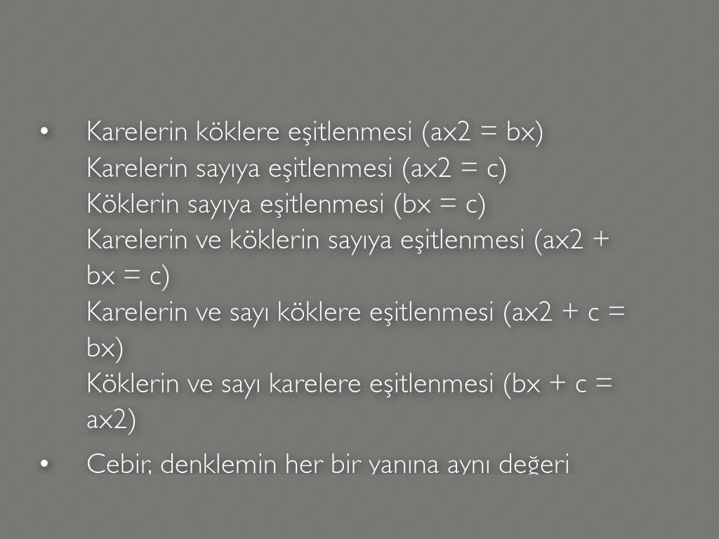 Karelerin ve köklerin sayıya eşitlenmesi (ax2 + bx = c)