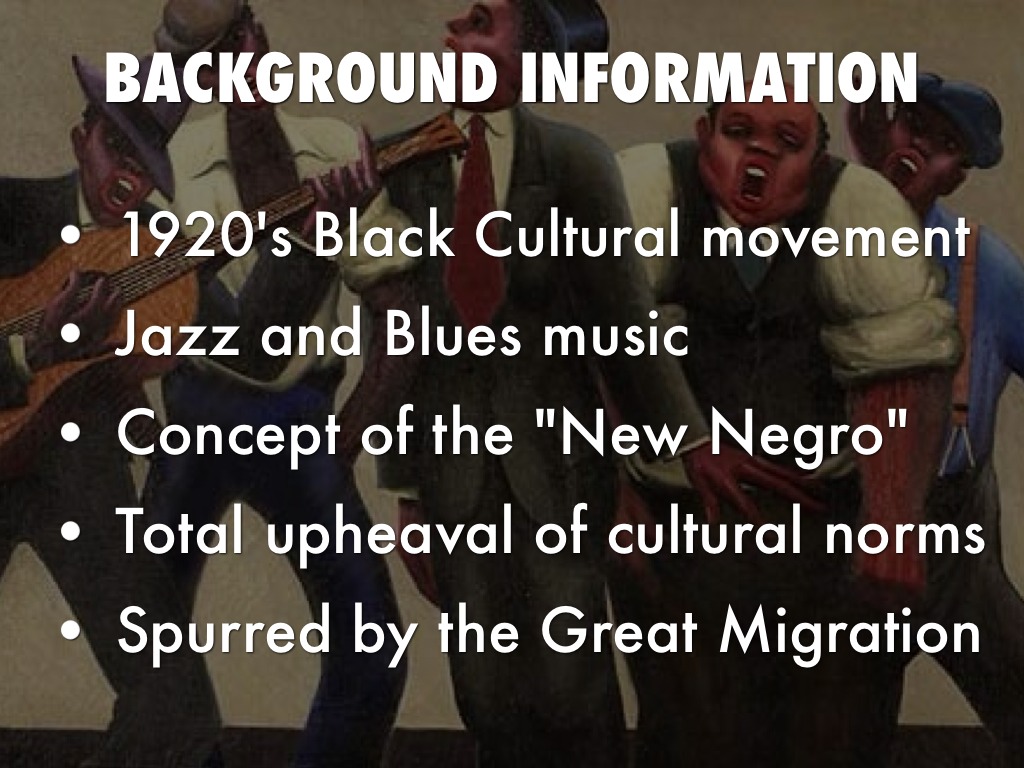 Characterizing the Harlem Renaissance was an overt racial pride that came to be represented in the idea of the New Negro, who through intellect and production of literature, art, and music could challenge the pervading racism and stereotypes to promote progressive or socialist politics, and racial and social integration. The creation of art and literature would serve to "uplift" the race.