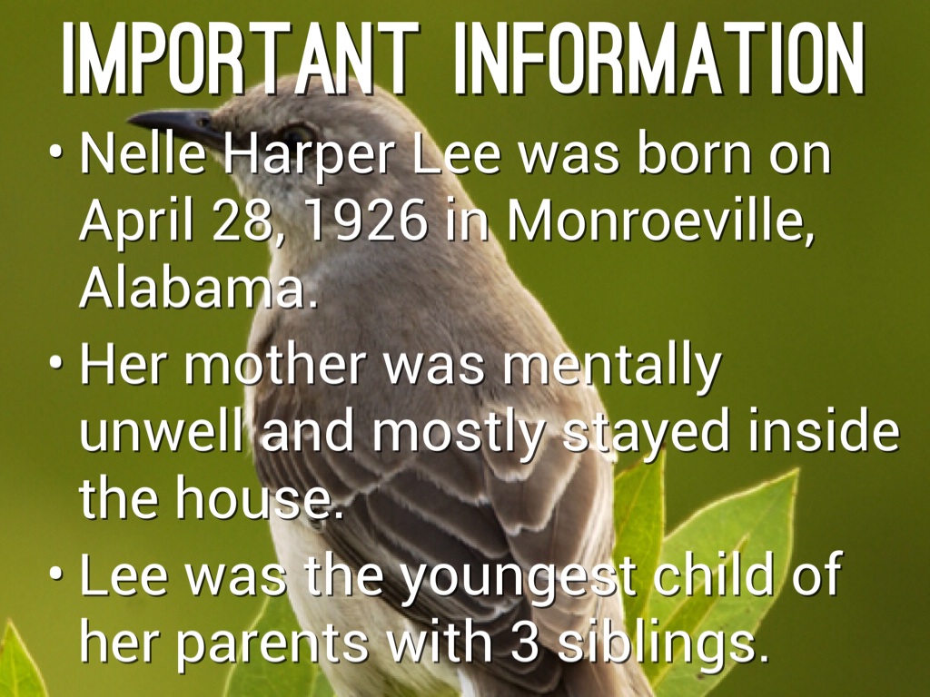 Nelle Harper Lee was born on April 28, 1926 in Monroeville, Alabama.