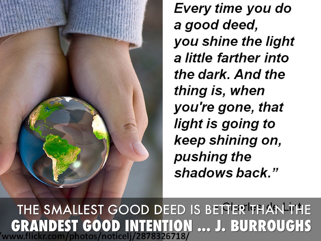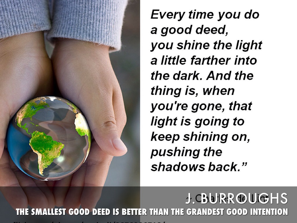 THE SMALLEST GOOD DEED IS BETTER THAN THE GRANDEST GOOD INTENTION