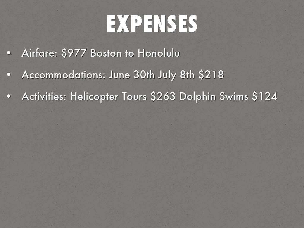 Activities: Helicopter Tours $263 Dolphin Swims $124