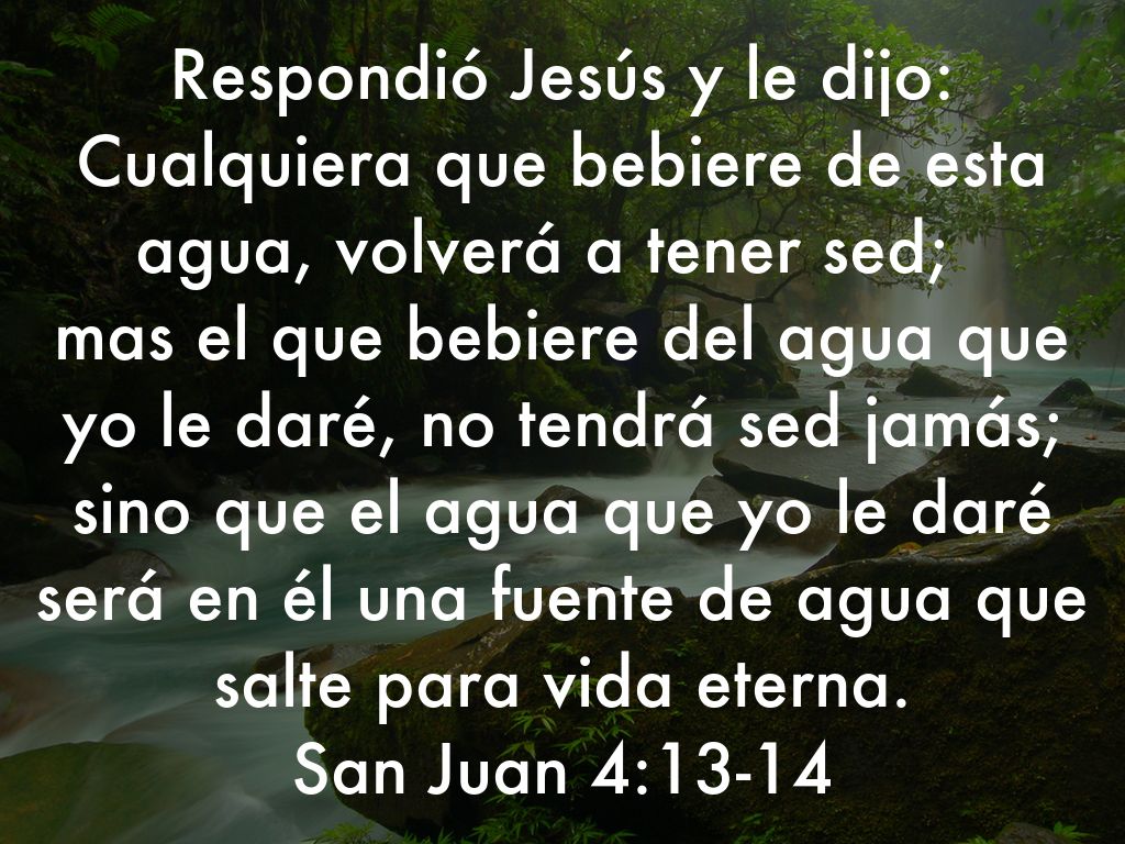 mas el que bebiere del agua que yo le daré, no tendrá sed jamás; sino que el agua que yo le daré será en él una fuente de agua que salte para vida eterna. San Juan 4:13-14