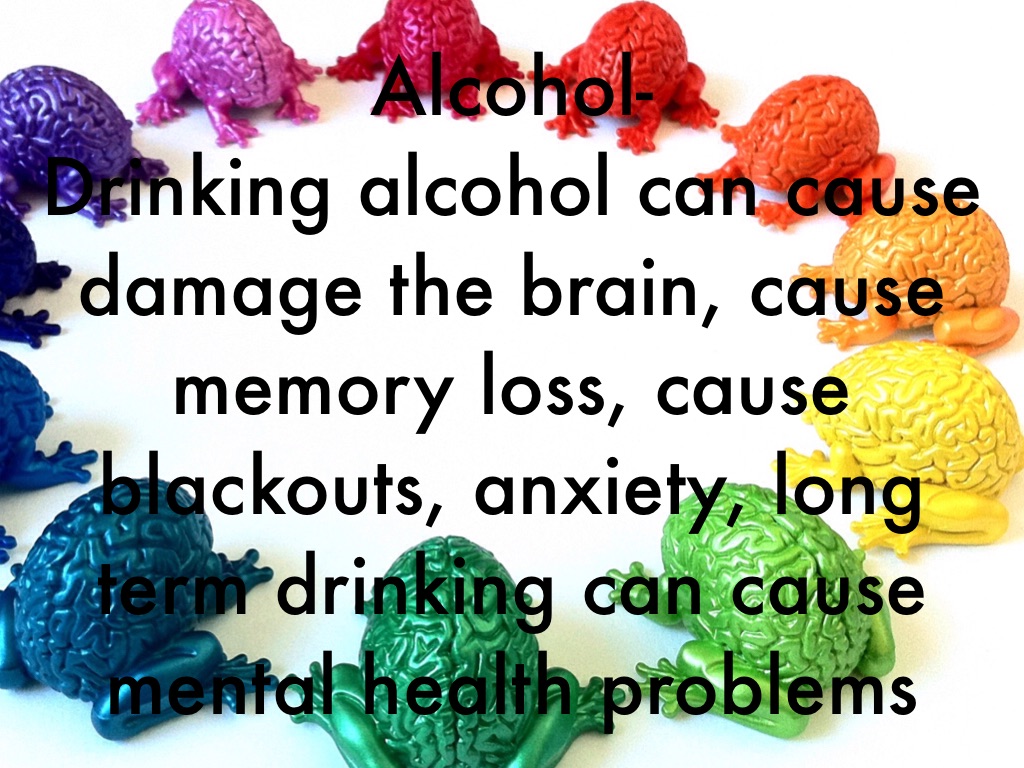 Drinking alcohol can cause damage the brain, cause memory loss, cause blackouts, anxiety, long term drinking can cause mental health problems