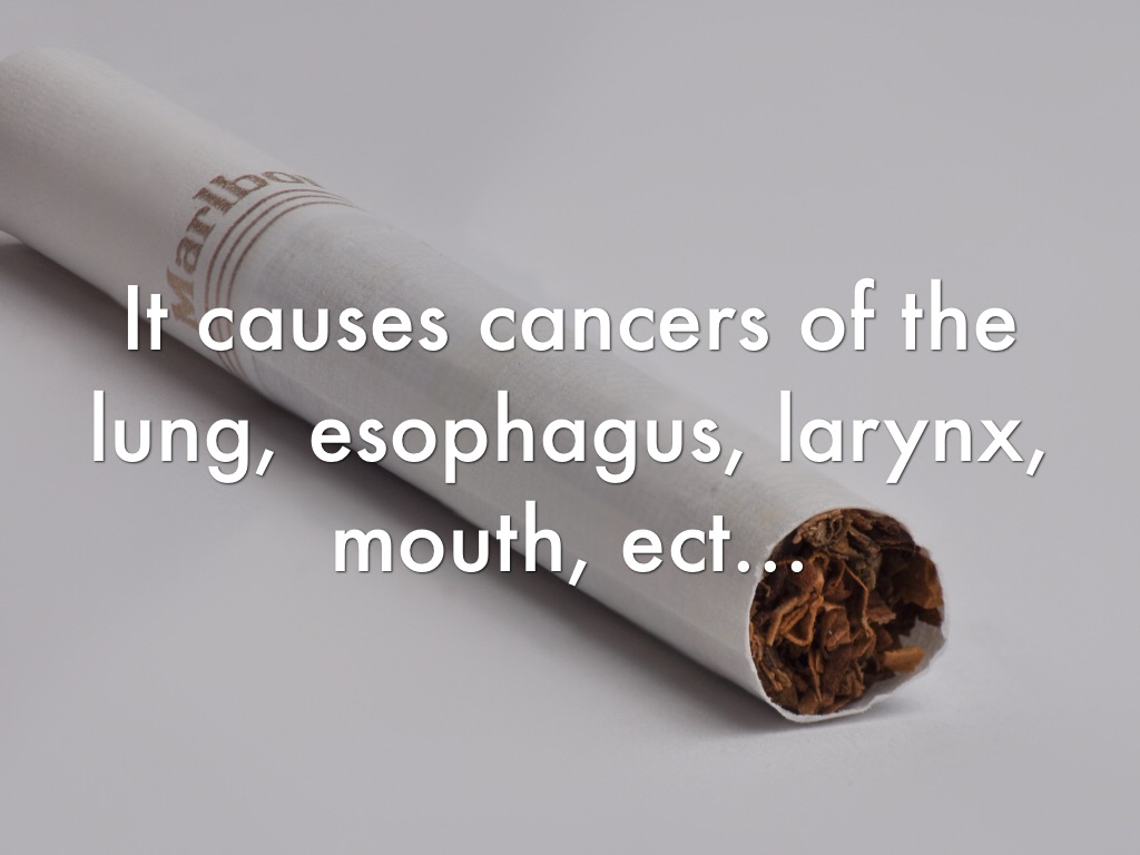 It causes cancers of the lung, esophagus, larynx, mouth, ect...