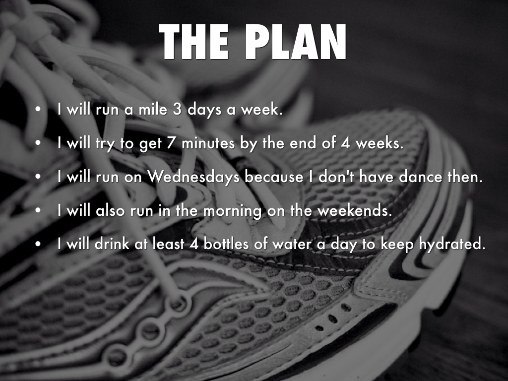 I WILL RUN A MILE 3 DAYS A WEEK AND RECORD MY TIME FOR EACH MILE