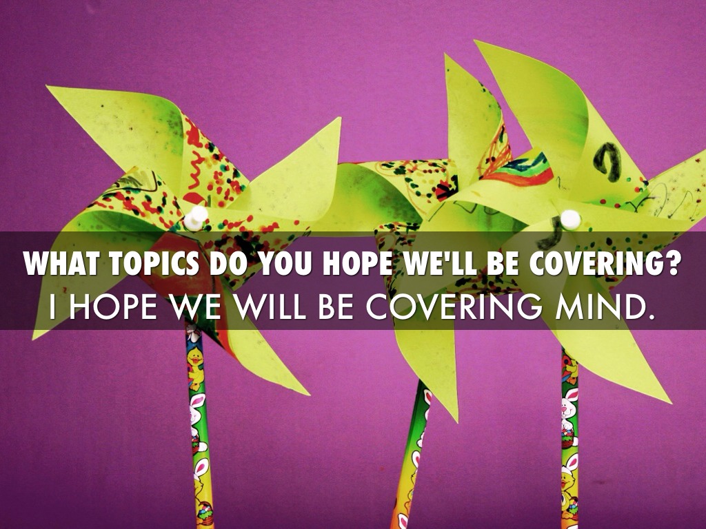 WHAT TOPICS DO YOU THINK WE WILL BE COVERING?