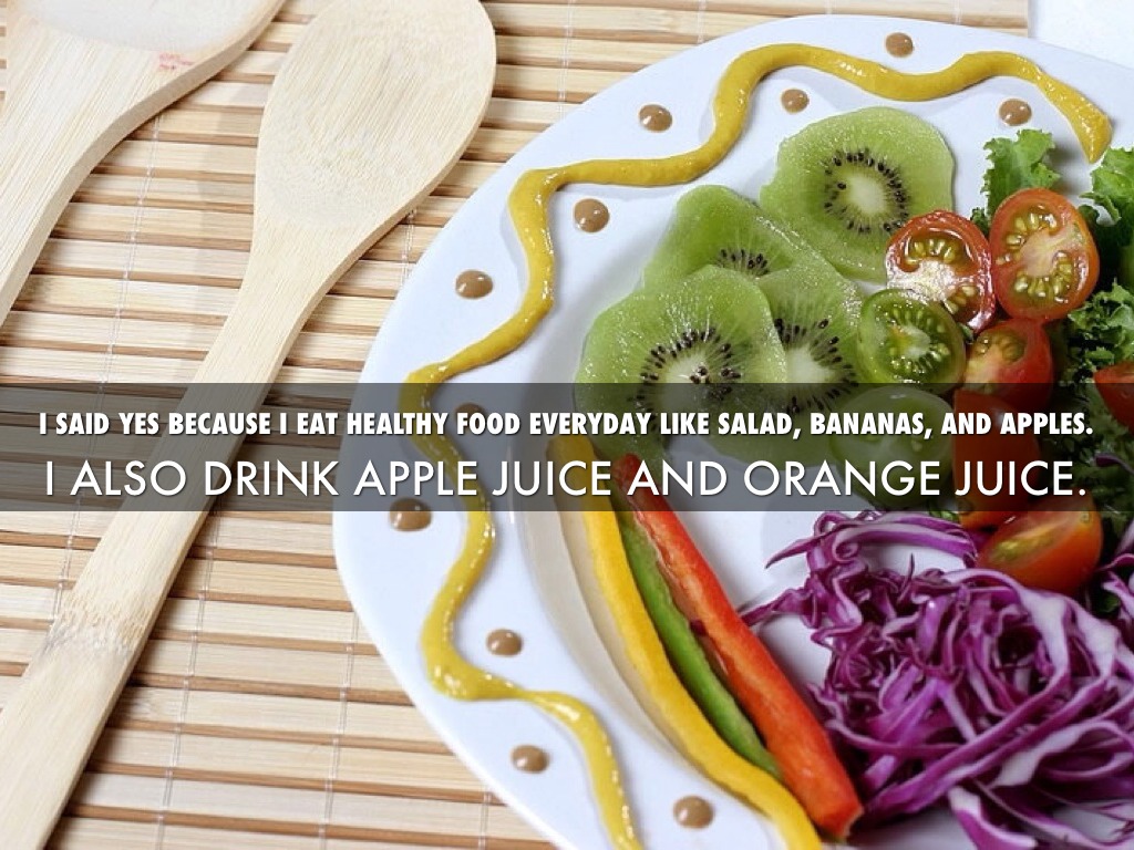 I SAID YES BECAUSE I EAT HEALTHY FOOD EVERYDAY LIKE SALAD, BANANAS, AND APPLES.