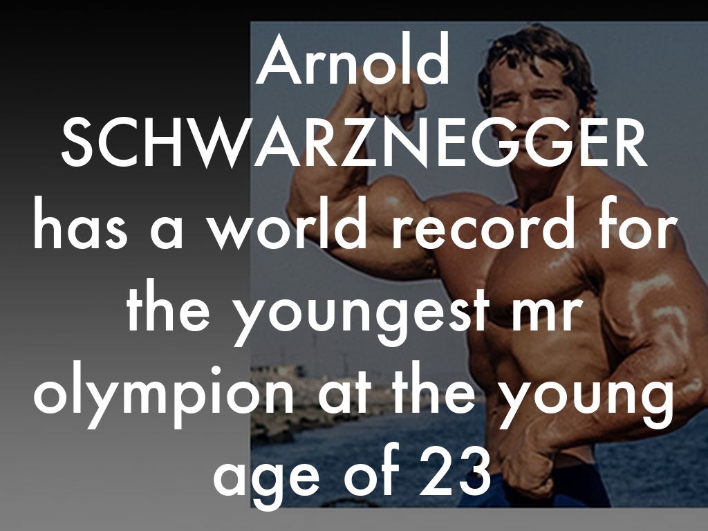 Arnold SCHWARZNEGGER has a world record for the youngest mr olympion at the young age of 23