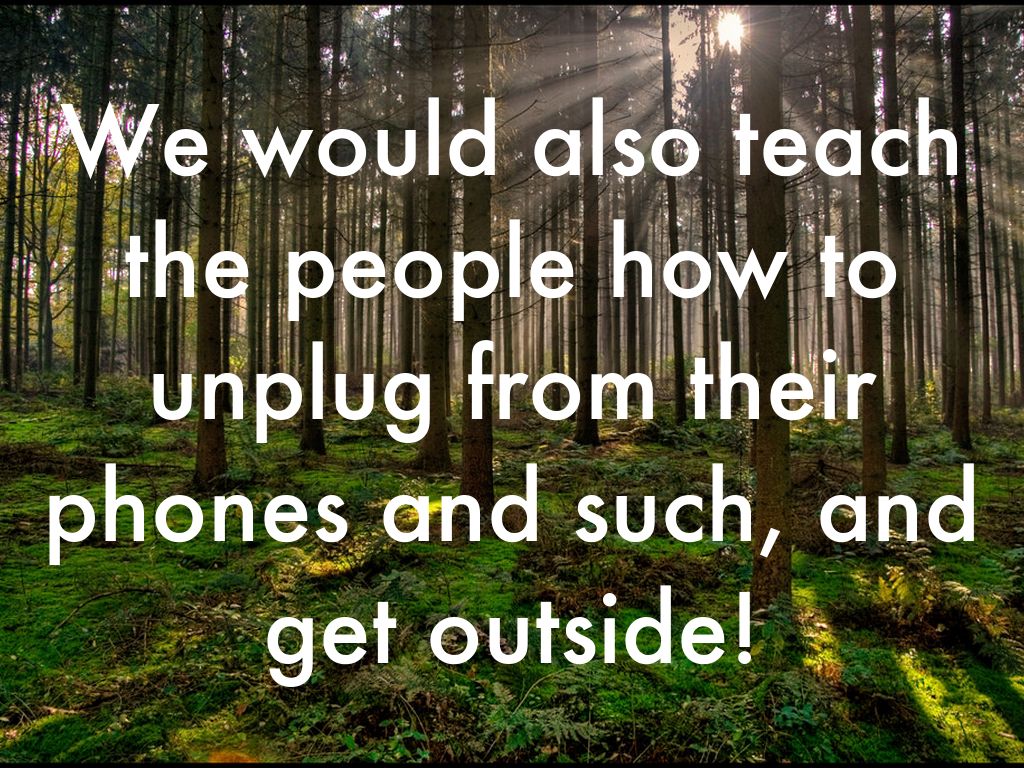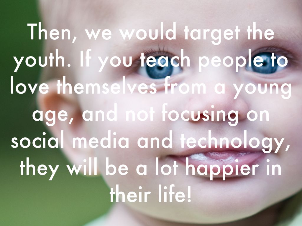 Then, we would target the youth. If you teach people to love themselves from a young age, and not focusing on social media and technology, they will be a lot happier in their life!
