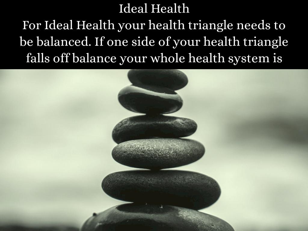 For Ideal Health your health triangle needs to be balanced. If one side of your health triangle falls off balance your whole health system is off.
