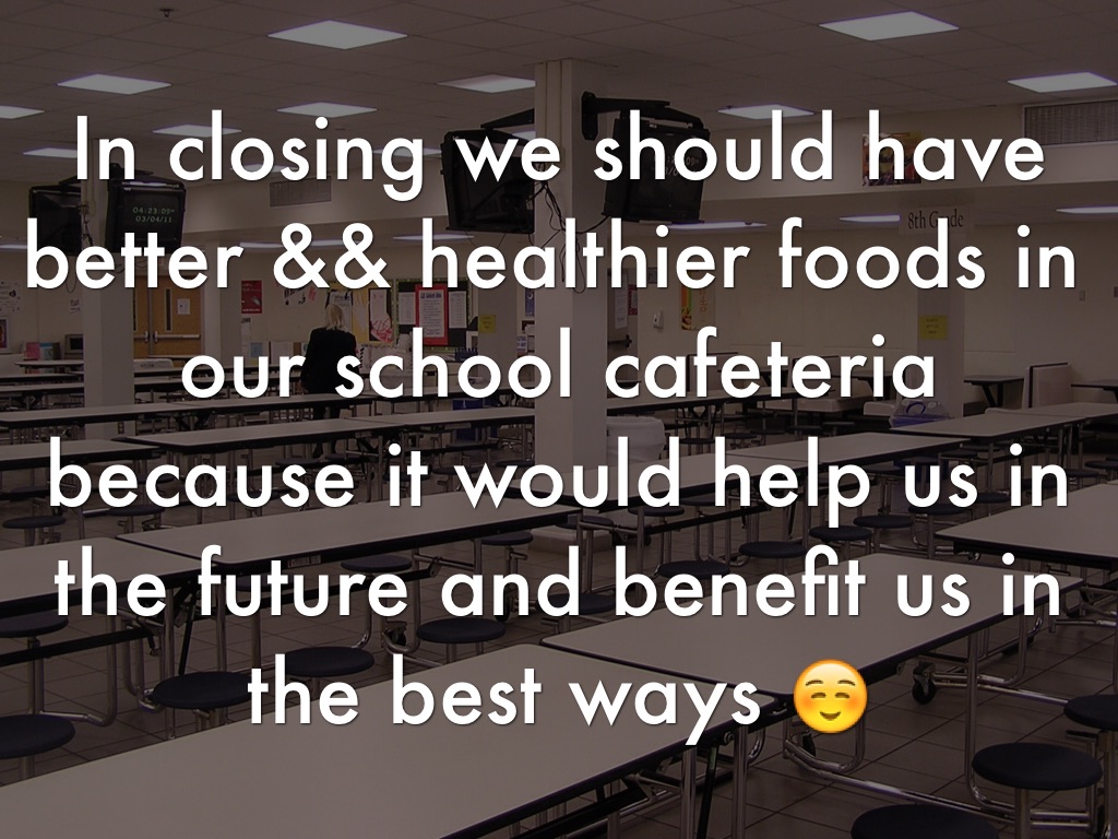 In closing we should have better && healthier foods in our school cafeteria because it would help us in the future and benefit us in the best ways βΊοΈ