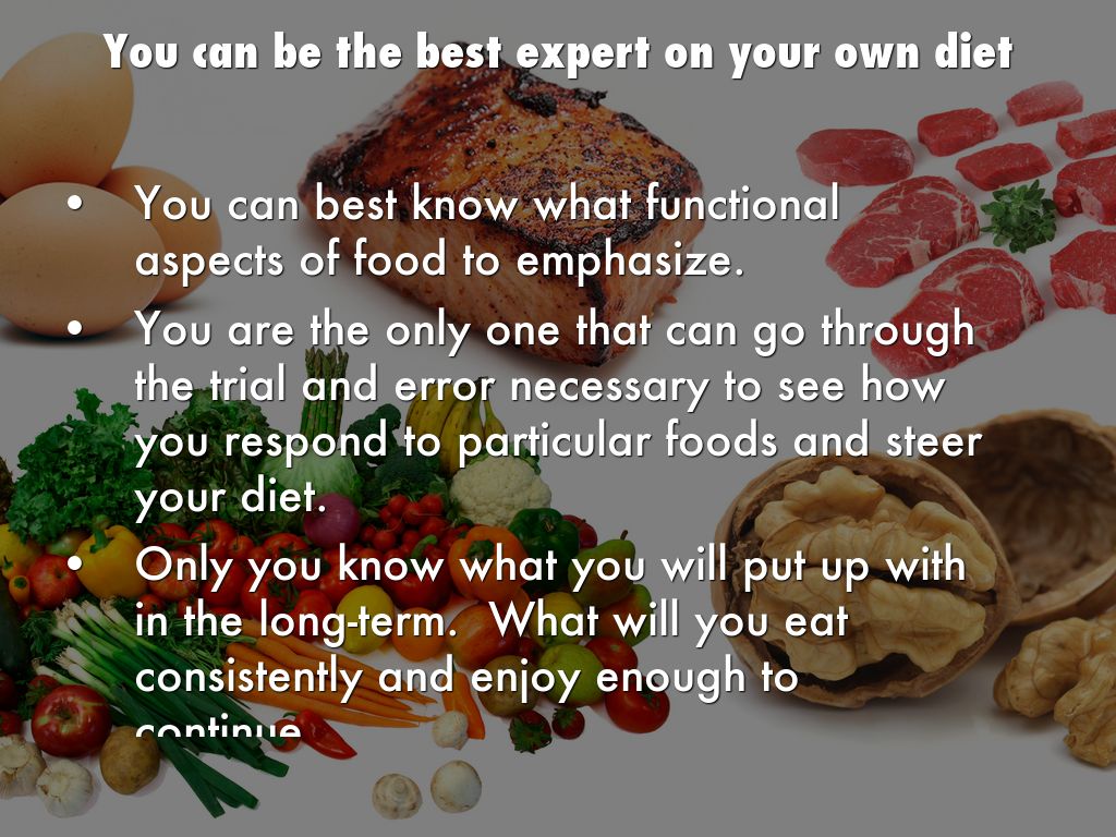 - You are the only one that can go through the trial and error necessary to see how you respond to particular foods and steer your diet.
