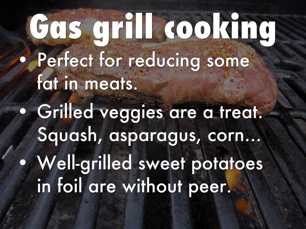 - Grilled veggies are a treat. Squash, asparagus, corn...
