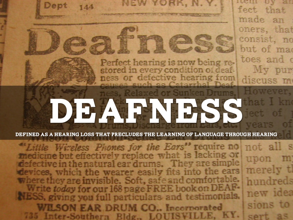 UMBRELLA TERM THAT REFERS TO ALL DEGREES OF HEARING LOSS, FROM SLIGHT TO PROFOUND