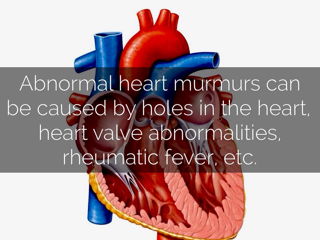 Abnormal heart murmurs can be caused by holes in the heart, heart valve abnormalities, rheumatic fever, etc.