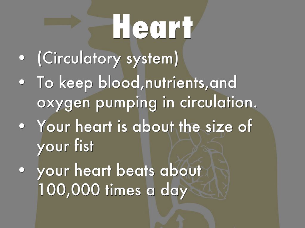 • To keep blood,nutrients,and oxygen pumping in circulation.
