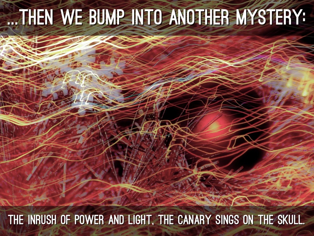 THE INRUSH OF POWER AND LIGHT, THE CANARY SINGS ON THE SKULL.