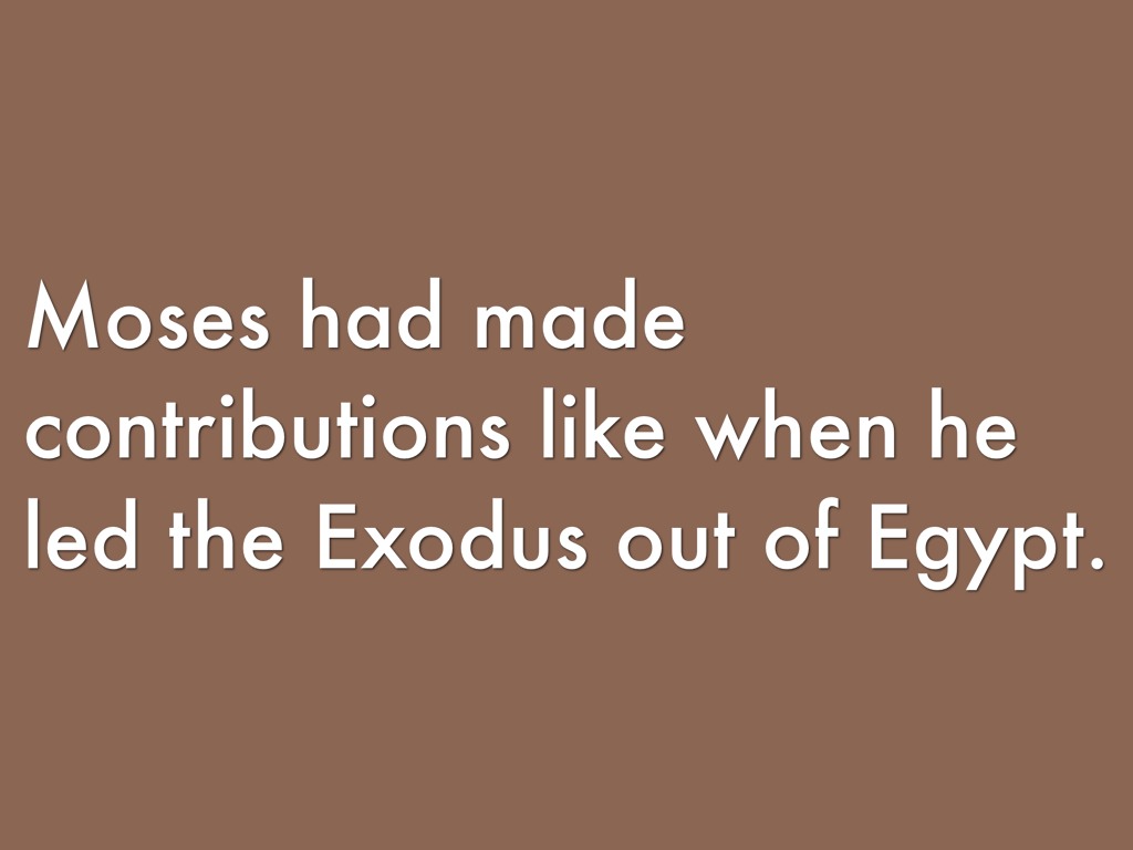 Moses had made contributions like when he led the Exodus out of Egypt.