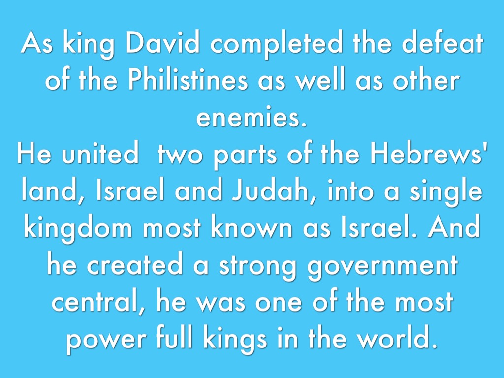He united two parts of the Hebrews' land, Israel and Judah, into a single kingdom most known as Israel. And he created a strong government central, he was one of the most power full kings in the world.