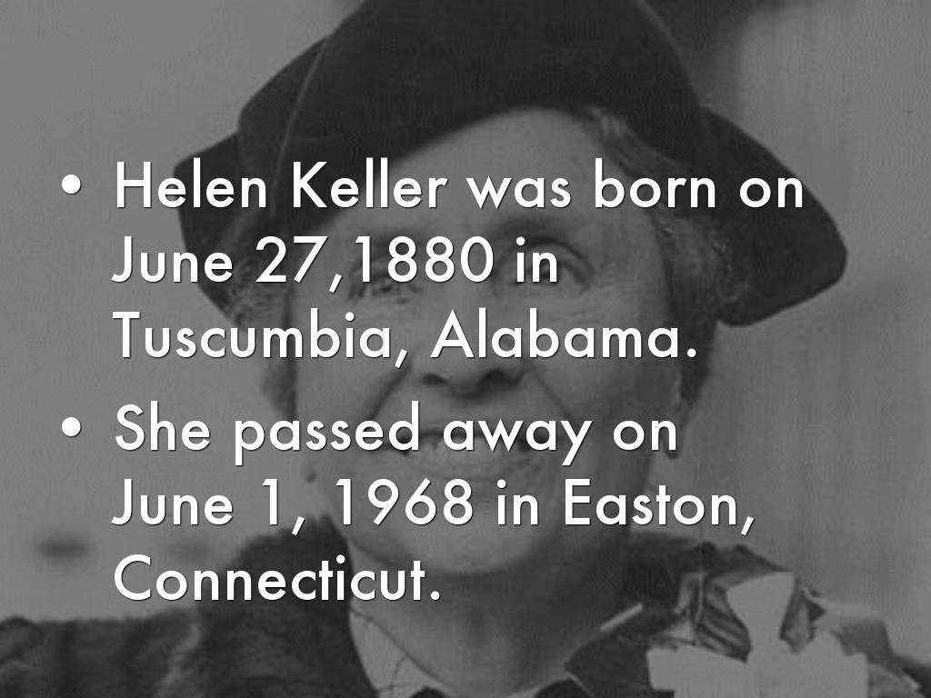 - Helen Keller was born on June 27,1880 in Tuscumbia, Alabama.