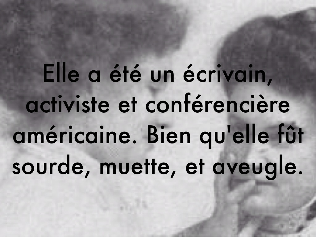 Elle a été un écrivain, activiste et conférencière américaine. Bien qu'elle fût sourde, muette, et aveugle.