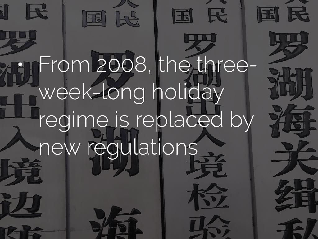 - From 2008, the three-week-long holiday regime is replaced by new regulations