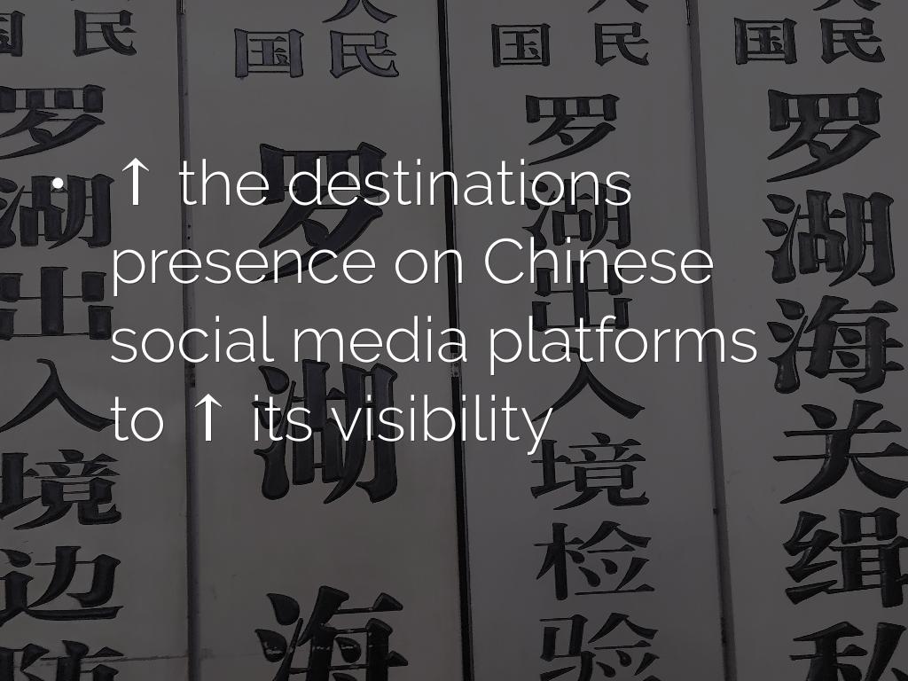 - ↑ the destinations presence on Chinese social media platforms to ↑ its visibility