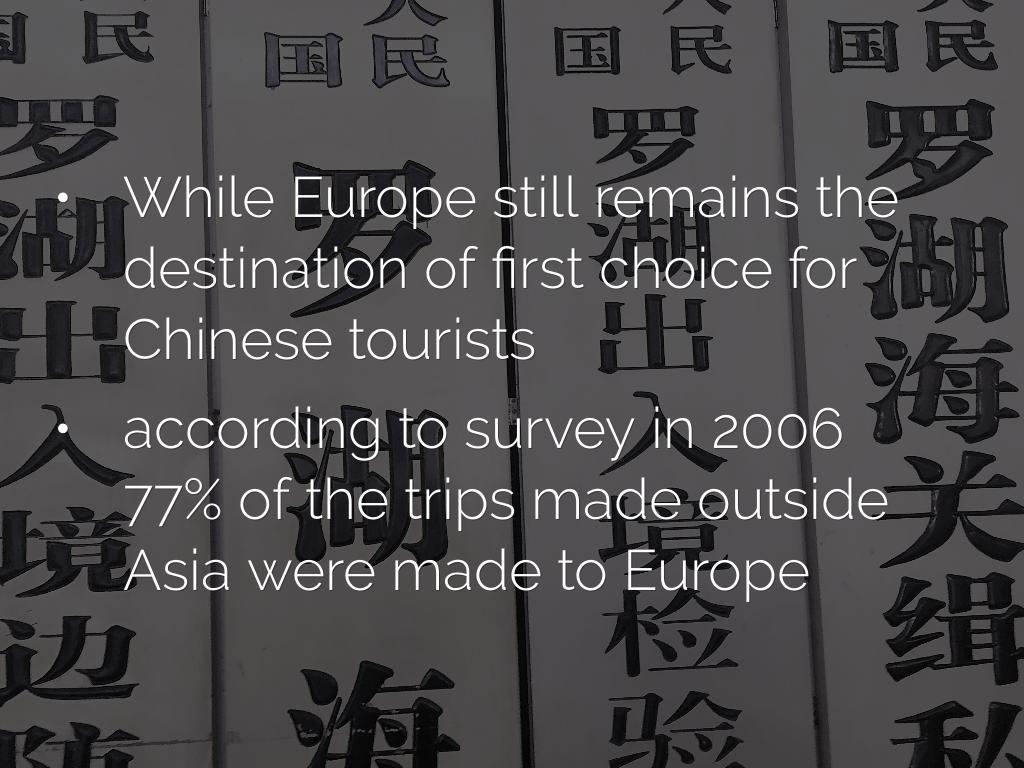 - While Europe still remains the destination of first choice for Chinese tourists