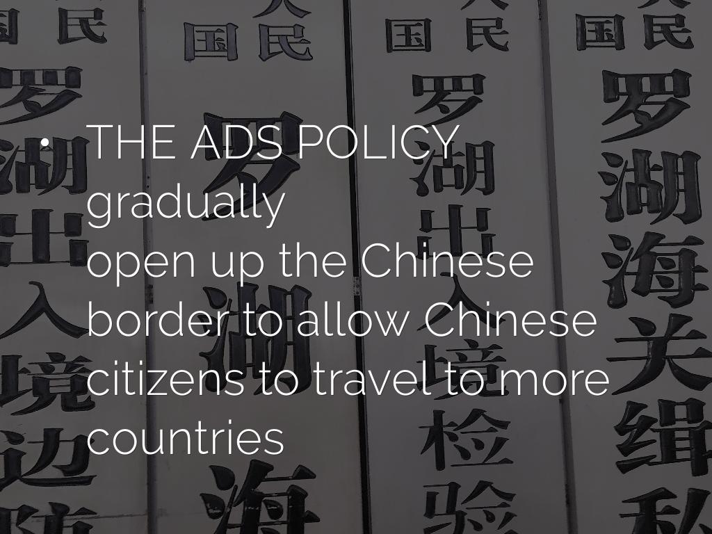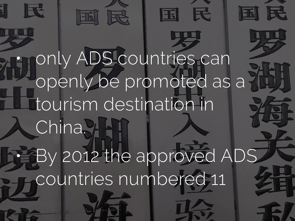 - only ADS countries can openly be promoted as a tourism destination in China.