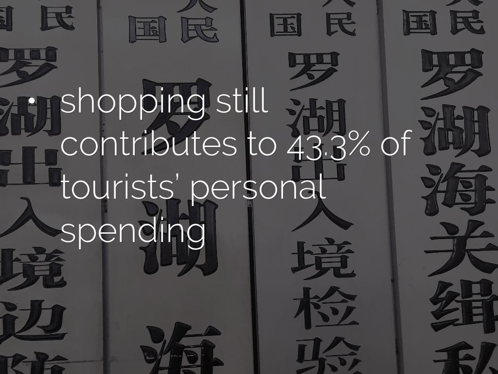 - shopping still contributes to 43.3% of tourists’ personal spending