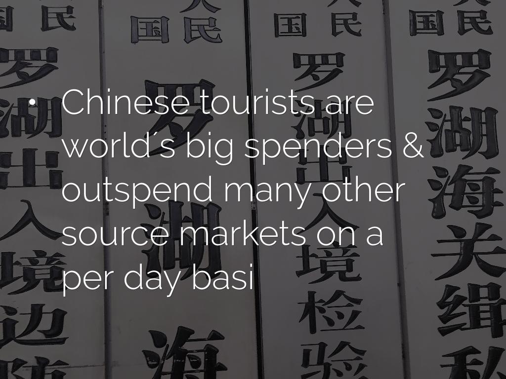- Chinese tourists are world´s big spenders & outspend many other source markets on a per day basi
