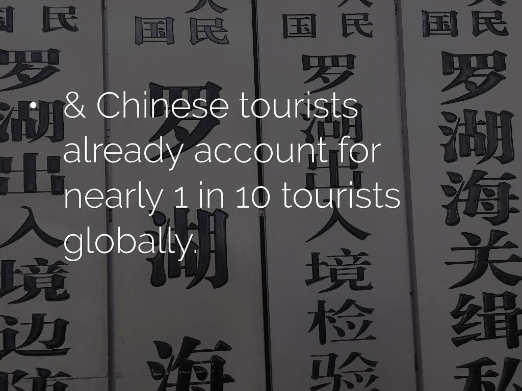 - & Chinese tourists already account for nearly 1 in 10 tourists globally.