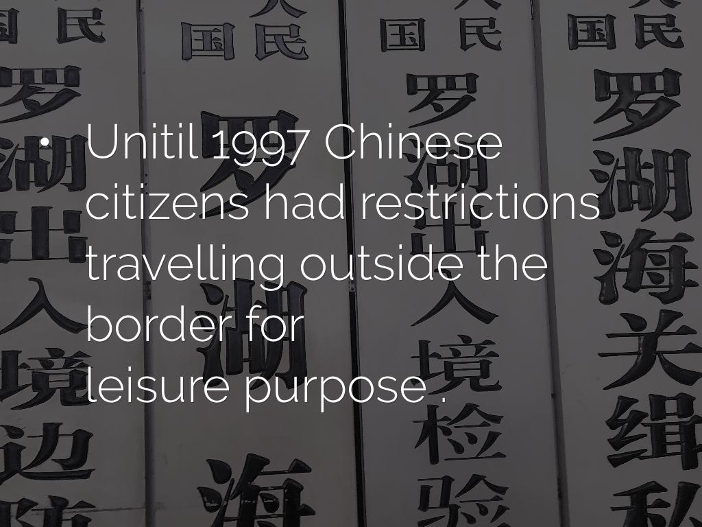 - Unitil 1997 Chinese citizens had restrictions travelling outside the border for