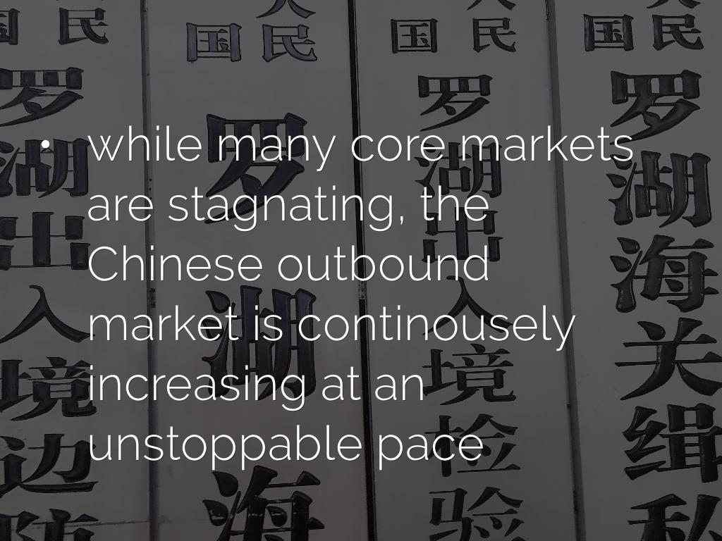 - while many core markets are stagnating, the Chinese outbound market is continousely increasing at an unstoppable pace